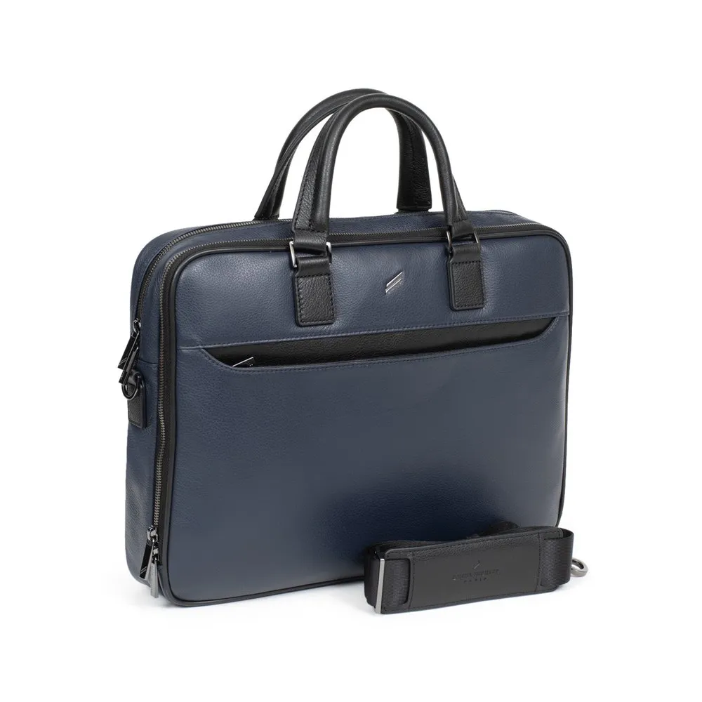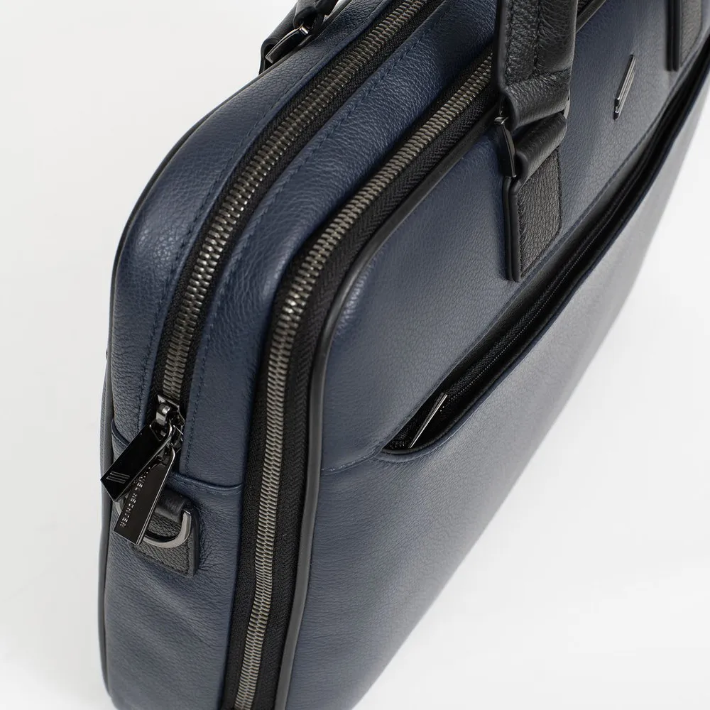 2 double slider zip fasteningsOuter material : Grained leatherLining : PolyesterGun metal détailsOuter : 1 flat zipped front pocket. 1 flat zipped back pocket.Intérieur : 2 main compartments with 1 padded laptop compartment. 1 flat zipped pocket. 3 flat pockets (including 1 phone compartment). 2 pen holders. 1 flat zipped front pocket. 1 flat zipped back pocket2 non-adjustable handles (32,5 cm)1 extra detachable adjustable strap with shoulder holder (94,5 cm mini / 155 cm maxi)1 trolley passage