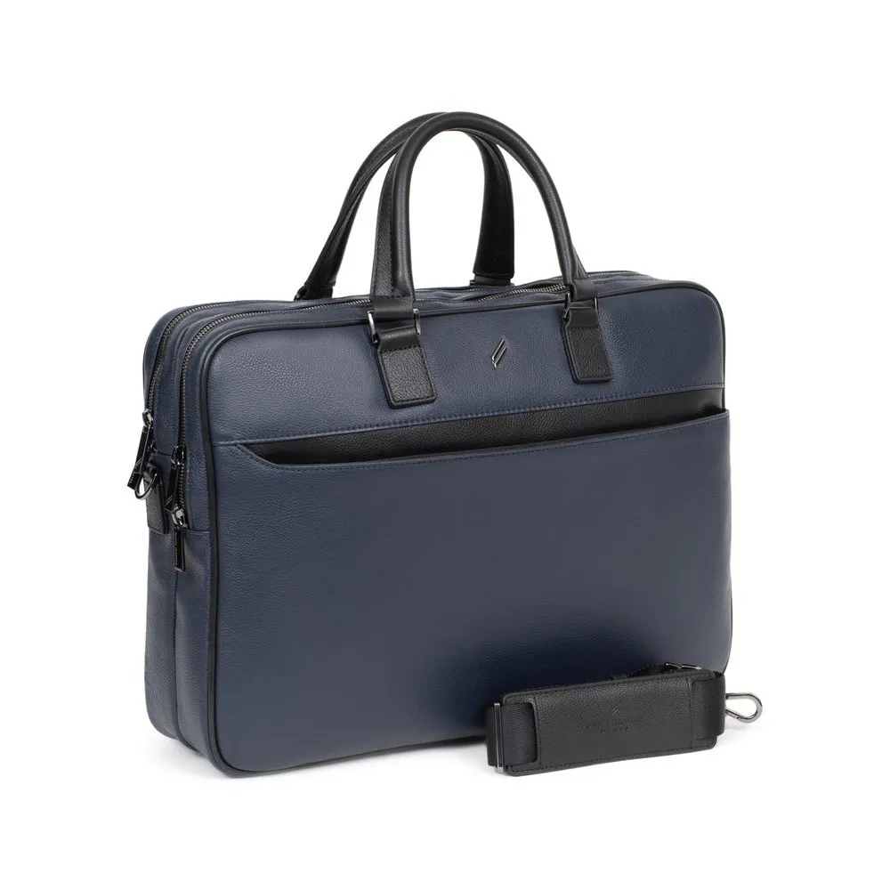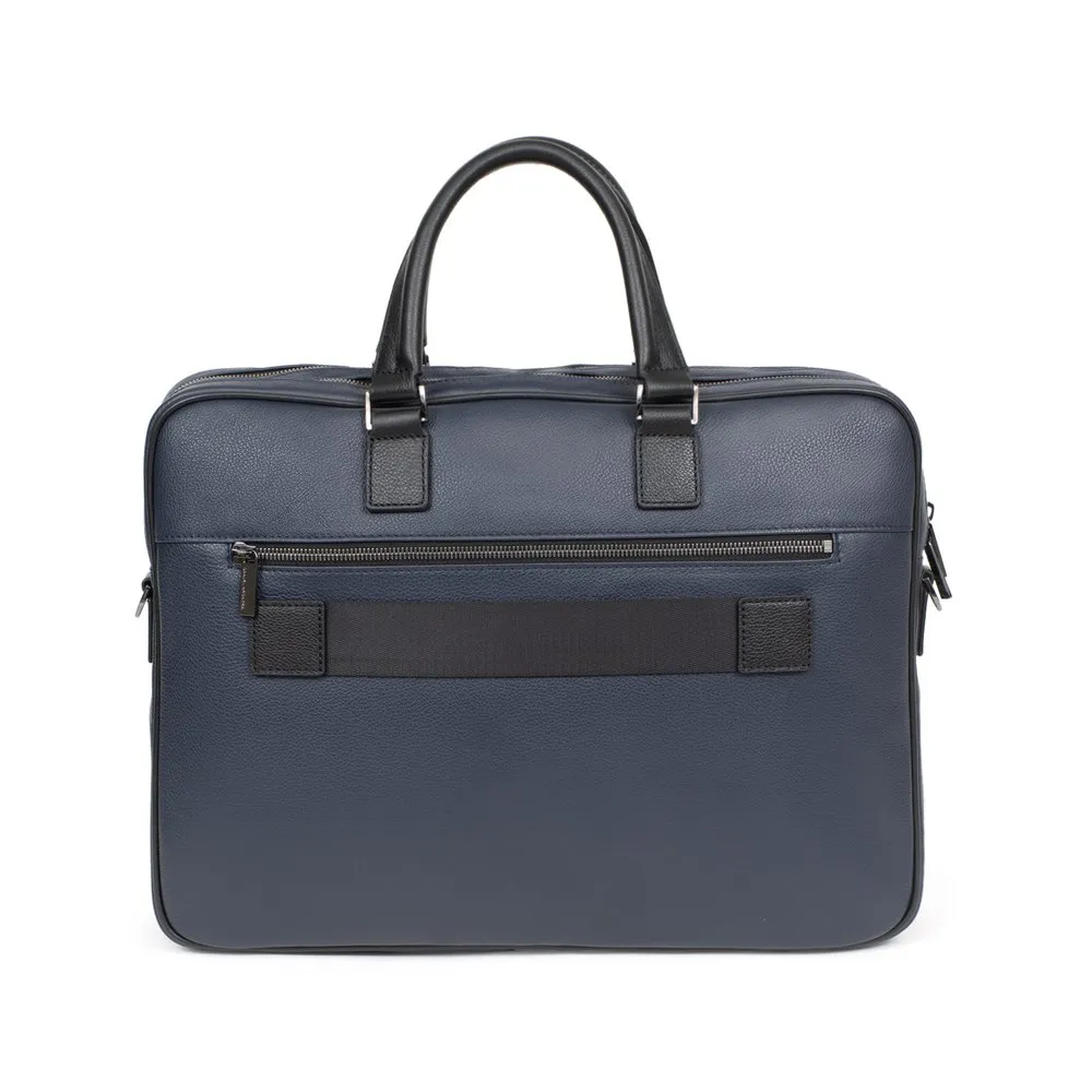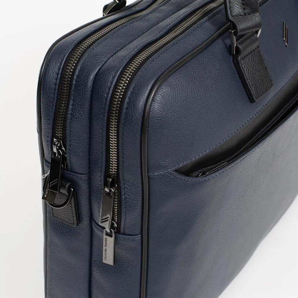 2 double slider zip fasteningsOuter material : Grained leatherLining : PolyesterGun metal détailsOuter : 1 flat zipped front pocket. 1 flat zipped back pocket.Intérieur : 2 main compartments with 1 padded laptop compartment. 1 flat zipped pocket. 3 flat pockets (including 1 phone compartment). 2 pen holders. 1 flat zipped front pocket. 1 flat zipped back pocket2 non-adjustable handles (35,5 cm)1 extra detachable adjustable strap with shoulder holder (95 cm mini / 155,5 cm maxi)1 trolley passage