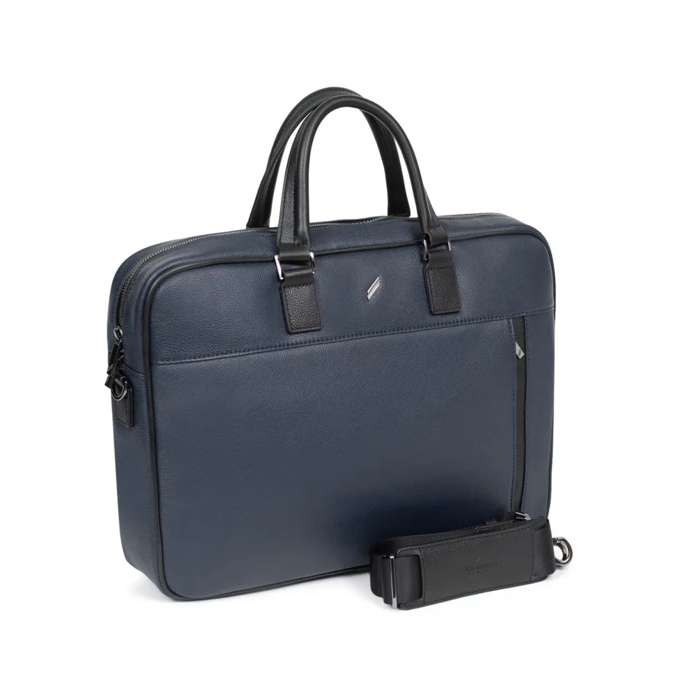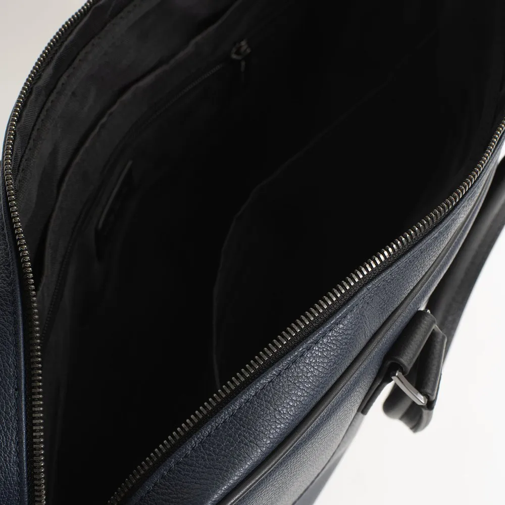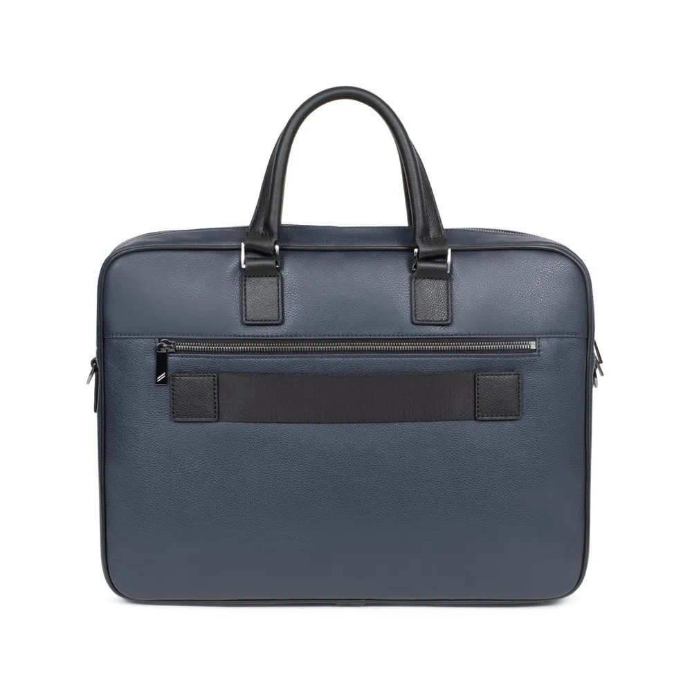 2 double slider zip fasteningsOuter material : Grained leatherLining : PolyesterGun metal détailsOuter : 1 flat zipped front pocket. 1 flat zipped back pocket.Intérieur : 1 main compartment with 1 padded laptop compartment. 1 flat zipped pocket. 3 flat pockets (including 1 phone compartment). 2 pen holders. 1 flat zipped front pocket. 1 flat zipped back pocket2 non-adjustable handles (36 cm)1 extra detachable adjustable strap with shoulder holder (94,5 cm mini / 155 cm maxi)1 trolley passage