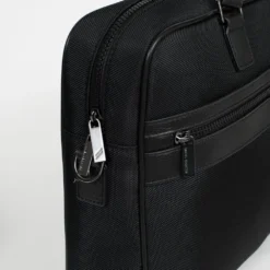 1 double slider zip fasteningOuter material: Nylon with leatherLining : PolyesterGun metal détailsOuter : 1 flat zipped front pocket.Intérieur : 1 main compartment with 1 padded laptop compartment. 1 flat zipped pocket. 3 flat pockets (including 1 phone compartment). 2 pen holders. 1 flat zipped front pocket.2 non-adjustable handles (35 cm)1 extra detachable adjustable strap with shoulder holder (90 cm mini / 142 cm maxi)1 trolley passage