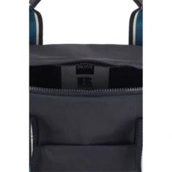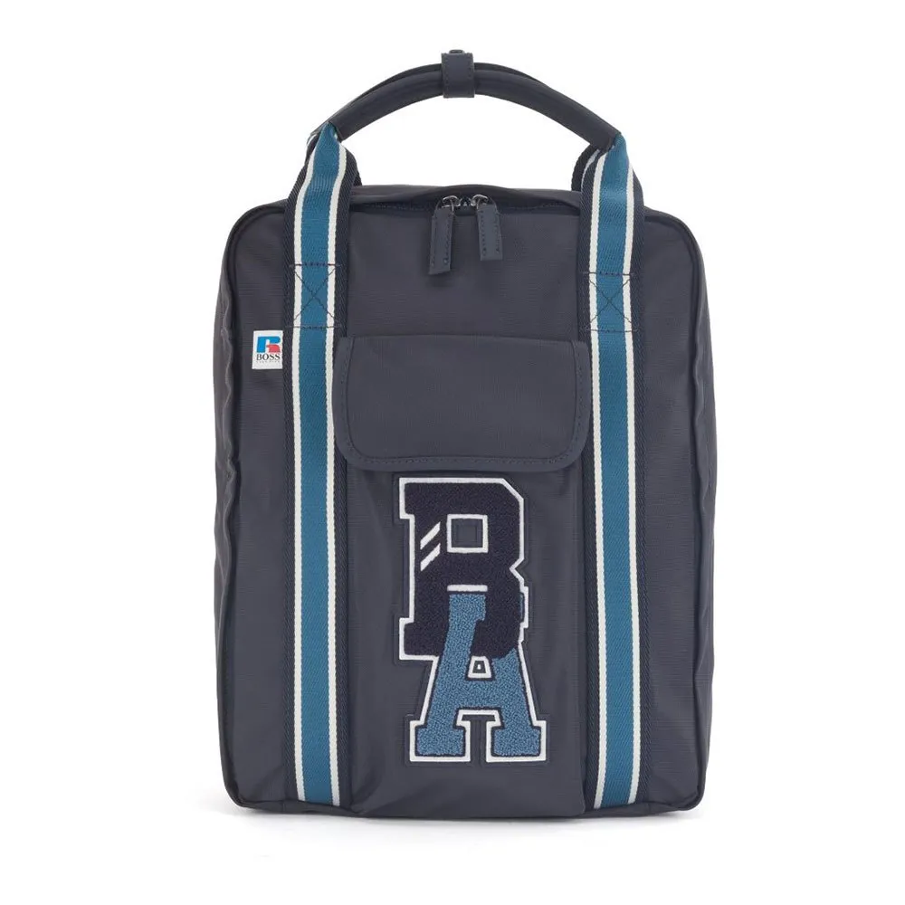 A contemporary backpack by BOSS, designed with a zipped main compartment and a front pocket. Crafted in structured nylon made from 100% recycled fibres, this backpack is detailed with exclusive branding at the front and on the flag trim. Three-tone webbing completes this distinctive accessory. The BOSS x Russell Athletic capsule unites signature style and expert craftsmanship with the aesthetic of an American sportswear icon, creating bold new designs for the next generation. We continuously look for more responsible ways to produce and finish our products.