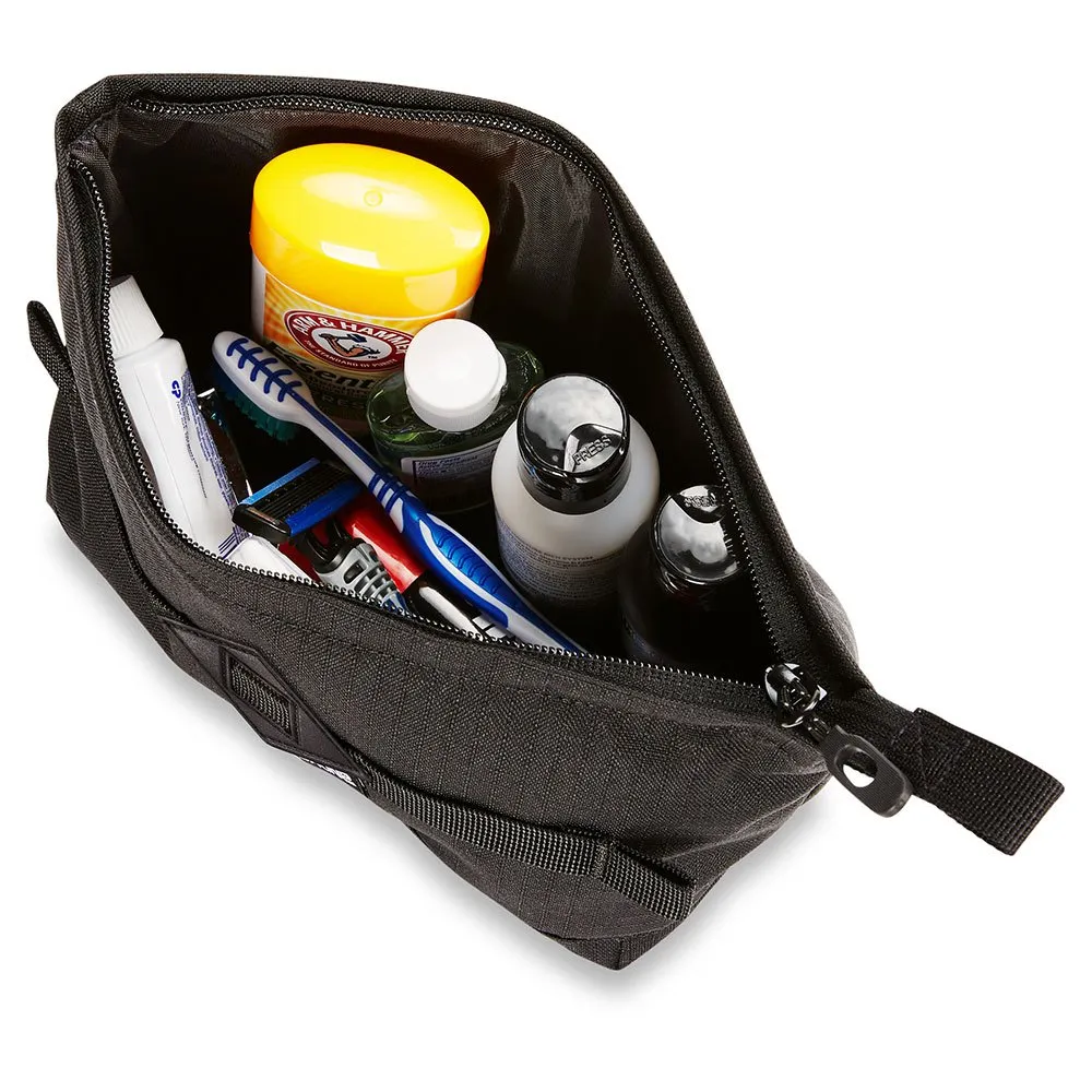 Available in large or medium options, our Dopp Kit is fully lined and water resistant, with an oversized main zipper that opens fully to give you complete access to the bag´s contents. The Large features an internal zippered pocket, for some extra organization. The bottom of the bag is reinforced to add rigidity to the structure of the bag and keep it standing upright on countertops. The size and shape of the Dopp Kit makes it functional for storing and organizing stuff at home as well.