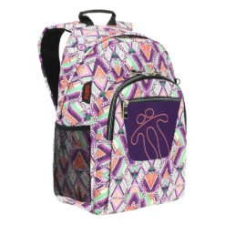 Padded back panel and adjustable shoulder straps.