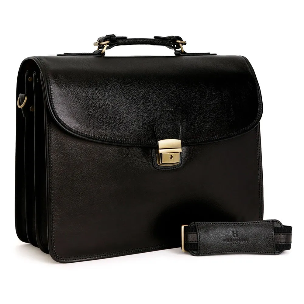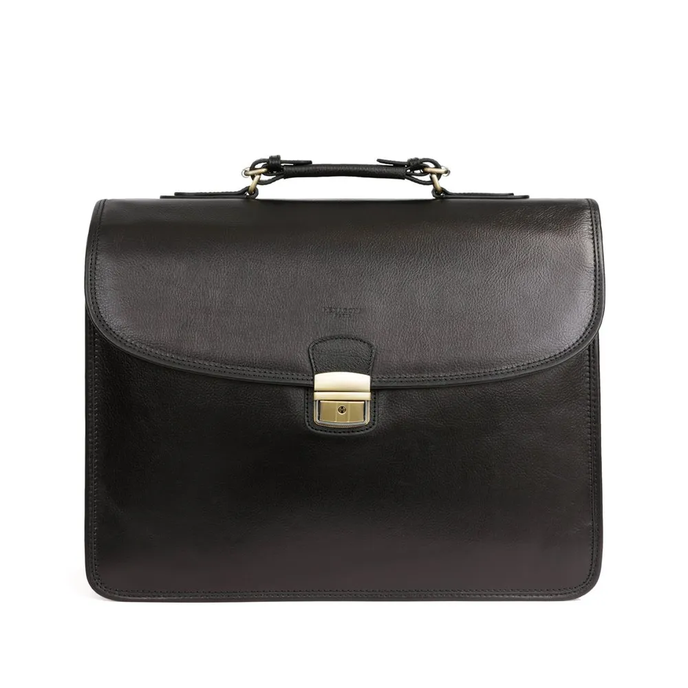 Zip fastening and push-button lockOuter material : Vegetable tanned neck leatherLining : SyntheticBronze metal detailsOuter : one front and back pocketsInterior : inner compartments and mobile phone pocketA4 format compatibleNon-adjustable handle (20 cm)Key ring