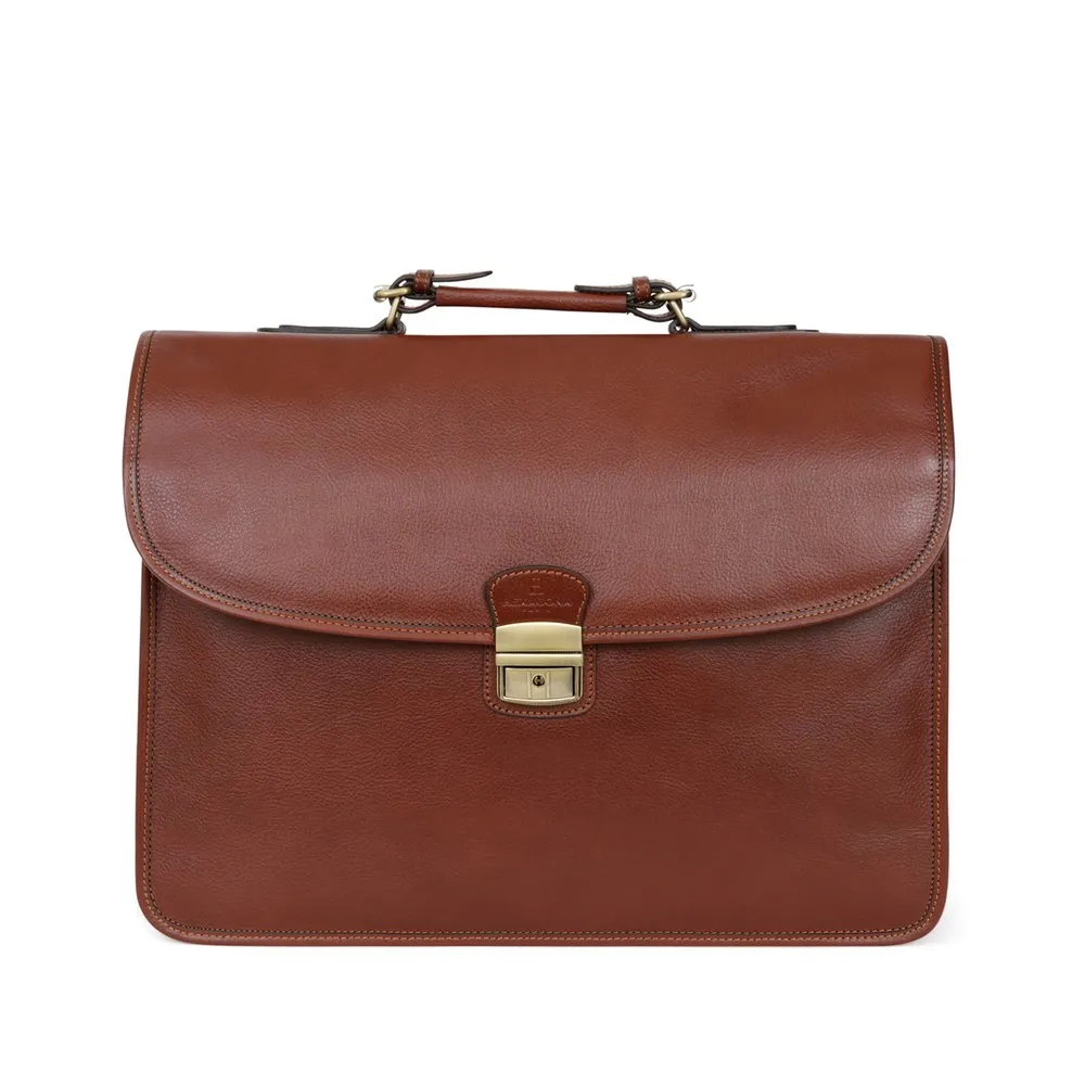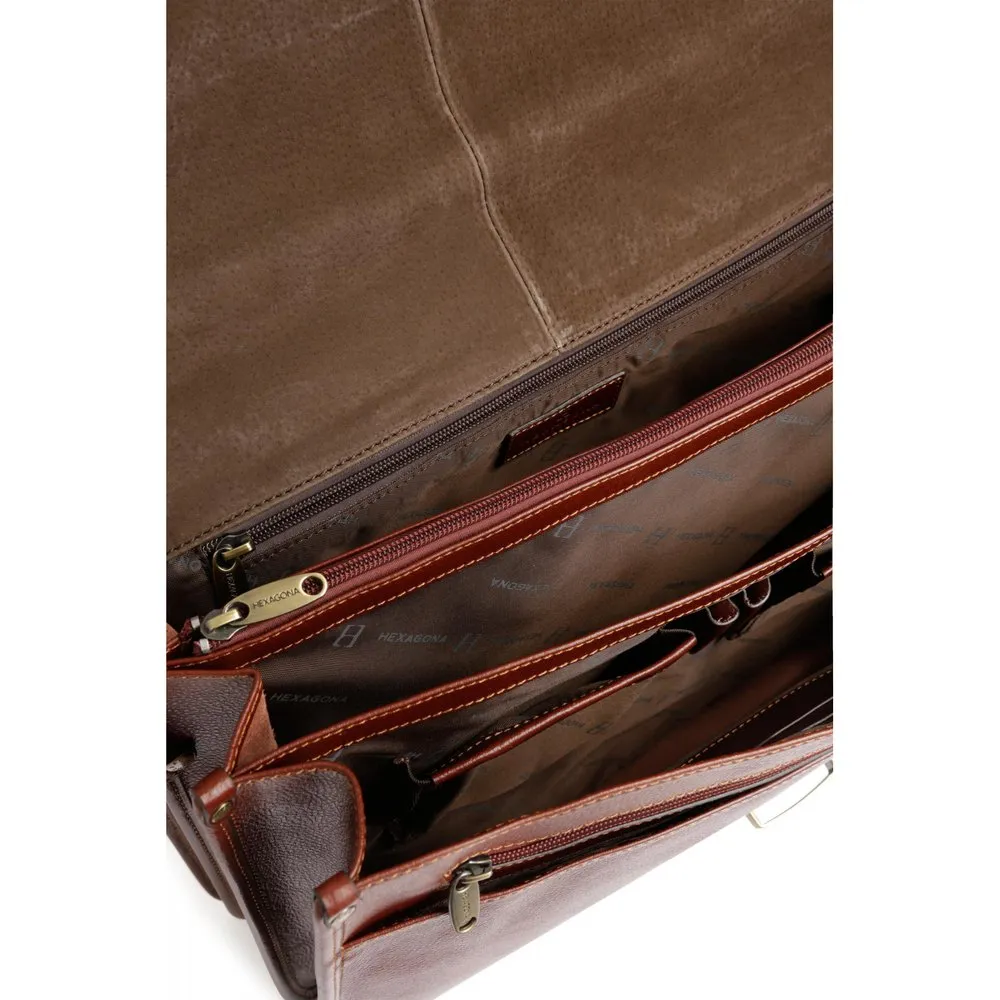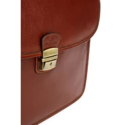 Zip fastening and push-button lockOuter material : Vegetable tanned neck leatherLining : SyntheticBronze metal detailsOuter : two front pockets and one back zip pocketInterior : inner compartments and mobile phone pocketA4 format compatibleNon-adjustable handle (20 cm)Key ring