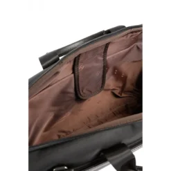 Dimensions: W 42 x H 32 x P 13 cm.Weight: 1 kg.Material: nylon with grained leather.Lining: synthetic.Finishing: silver.1 double-slider zip fastening.Outer: 1 zipped front pocket with 1 phone compartment. 3 card slots. 2 pen compartments. 1 zipped back pocket. 1 trolley loop.Interior: 1 main compartment with 1 padded laptop compartment. 2 flat pockets.Compatible with 17ยดยด laptop, A4 format and mobile phone.2 non-removable non-adjustable handles (34 cm). 1 removable adjustable additional shoulder strap with shoulder pad (87,5 cm mini/141,5 cm max).