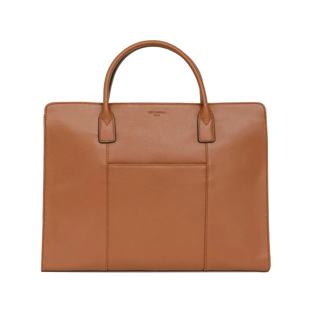 Zip fasteningsOuter material : Grained leatherLining : SyntheticSilver metal detailsOuter : one front magnet pocket and one back zip pocketInterior : inner compartments and mobile phone pocketA4 format compatibleNon-adjustable handles (36 cm)