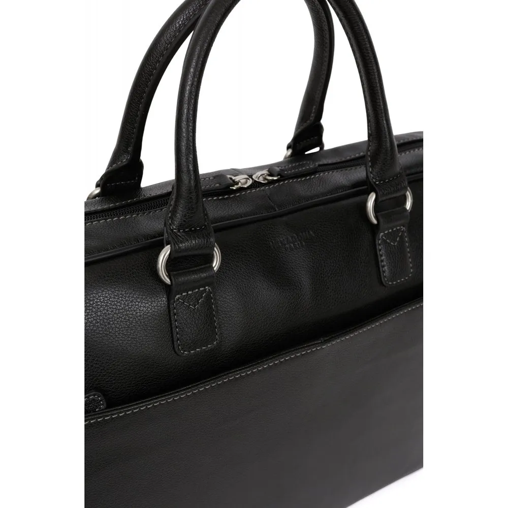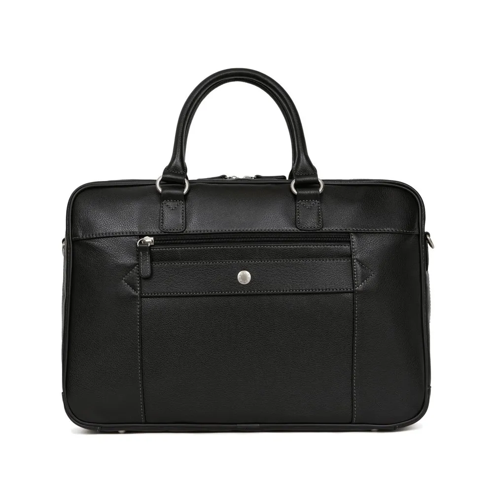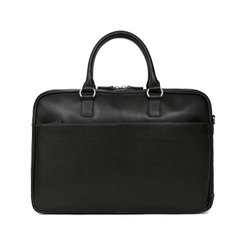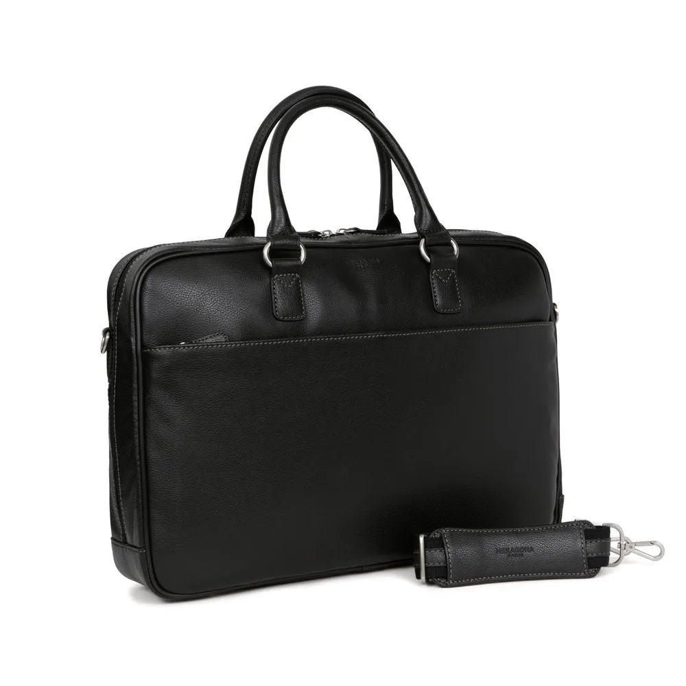 Zip fasteningOuter material : Grained leatherLining : SyntheticSilver metal detailsOuter : one front and one back zip pocketsInterior : inner compartments with computer and mobile phone pockets13” laptop and A4 format compatibleNon-adjustable handles (38 cm)Trolley passing