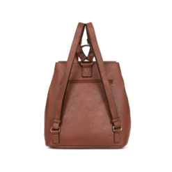 Dimensions: W 27 x H 29 x P 20 cm.Weight: 0,67 kg.Material: soft synthetic.Lining: synthetic.Finishing: shiny gold.1 flap fastening with 1 magnetic tab. 1 zip fastening.Outer: 1 front pocket with magnetic tab flap. 1 flat zipped back pocket.Interior: 1 main compartment with 1 zipped separation pocket. 1 flat zipped pocket. 2 flat pockets (including 1 phone compartment).Compatible with mobile phone.2 non-removable adjustable straps (58 cm mini/100 cm max). 1 non-removable non-adjustable handle (16,5 cm).