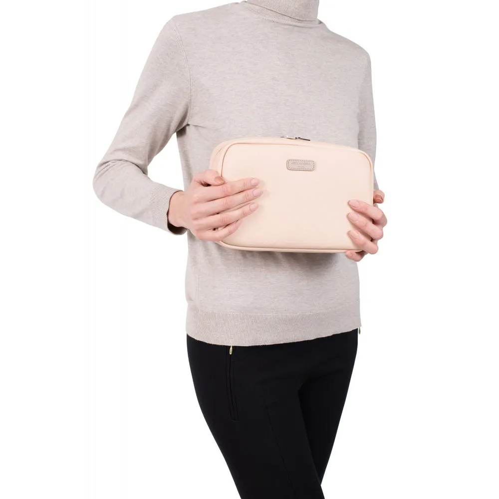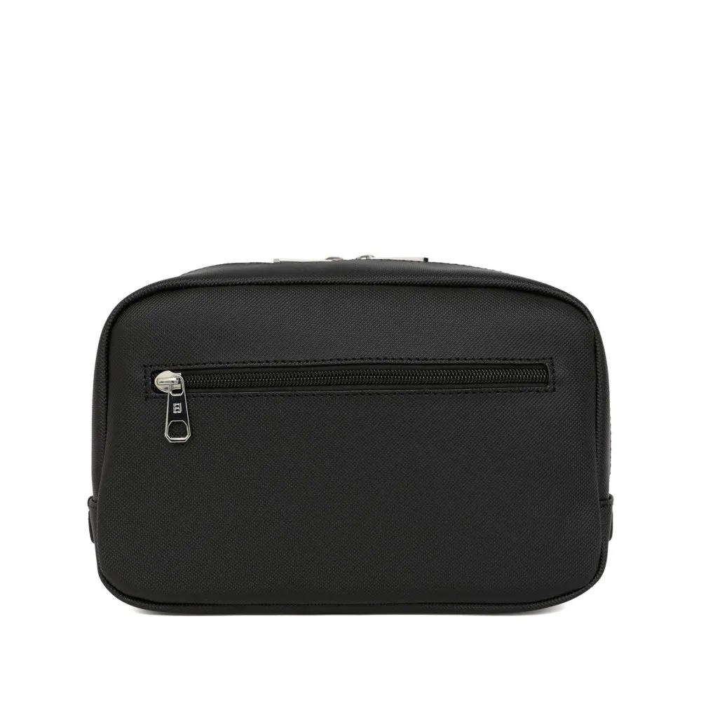 Zip fasteningOuter material : SyntheticLining : SyntheticShiny silver detailsOuter : one back zip pocketInterior : inner compartments and four elastic bottle holdersWaterproof material