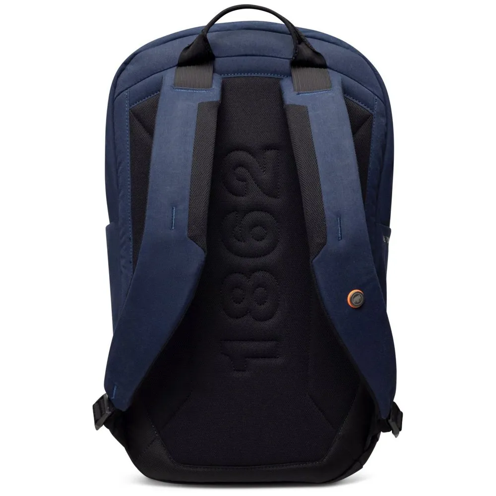 A classic daypack from the Xeron family with practical features and great details. The outer material is made from recycled polyester. A wax treatment on the outer surface gives the backpack a casual used look. The anatomically shaped and softly padded shoulder straps make it feel very comfortable to carry. It has various compartments inside, including a section for a laptop. You can attach your key securely to the clip in the zipper compartment. Two front pockets with zippers provide additional storage. With the Mammut Mini Biner and printed lining, you can take a little piece of the mountains with you on your urban rambles
