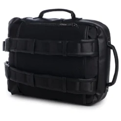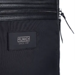 Multifunctional Messenger bag made of PU imitation of pumped leather combined with technical nylon.