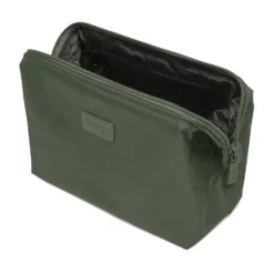 There’s a bit of retro style in this larger kit with a framed opening that allows you to see everything stashed inside. Features an interior pocket and double zipper closure.