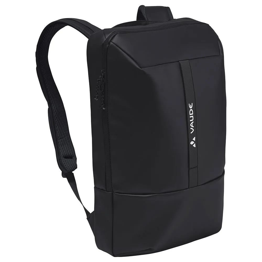 Big things come in small packages! When you don’t have a lot of gear to haul, the Mineo Backpack 17 is an ideal choice for an urban pack. Its 17 litres of volume can hold a 13.4″ laptop or the like, as well as a water bottle, writing pad, rain jacket and other items you’ll need throughout the day. Everything is kept well organized and tidy. And when you’ve got a bit of excess gear – like our add-on Mineo Tech Pouch, a bike lock or your jacket – an exterior daisy chain will keep it safe. The material is also something speial – it’s a recycled, bluesign® certified polyester that’s robust and durable as well as water and dirt repellent. Reflective elements, a designated space for writing utensils and trolley sleeve round off its useful details. Access to the main compartment is exceptionally convenient thanks to the large, asymmetrical zip – no matter how deep you’ve burried it, you´ll still be able to find it easily. A small exterior zip pocket will keep your phone, tissues and wallet close at hand. Ample back padding and ergonomic shoulder straps ensure comfortable carrying. And when you finally make it to your front door late at night, an integrated high-stretch key holder on the shoulder strap means that your keys will always be close at hand – and you won’t even have to take off the pack to find them. The VAUDE Green Shape label stands for environmentally-friendly, functional products made from sustainable materials. In addition, this product is climate neutral – we’ve analyzed and systematically reduced all emissions arising from materials, manufacturing, and shipping. Emissions that are currently unavoidable were fully offset by the independent non-profit myclimate organization.